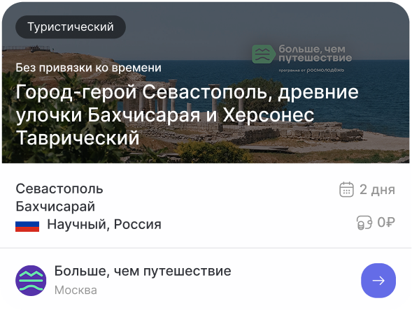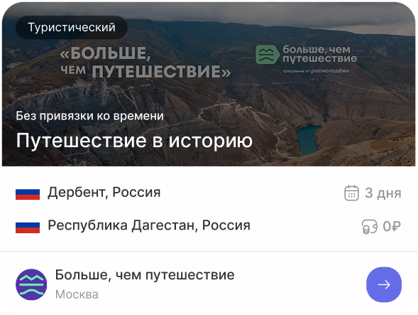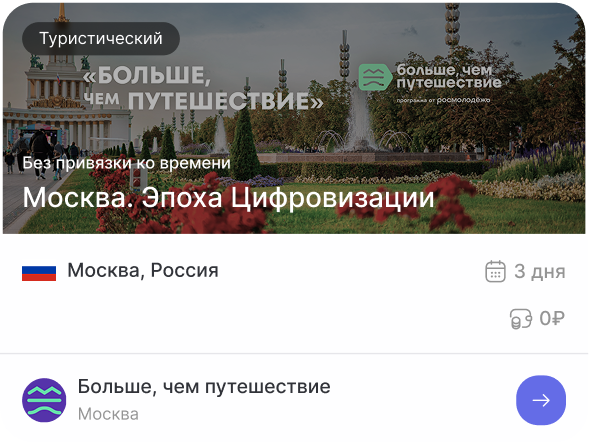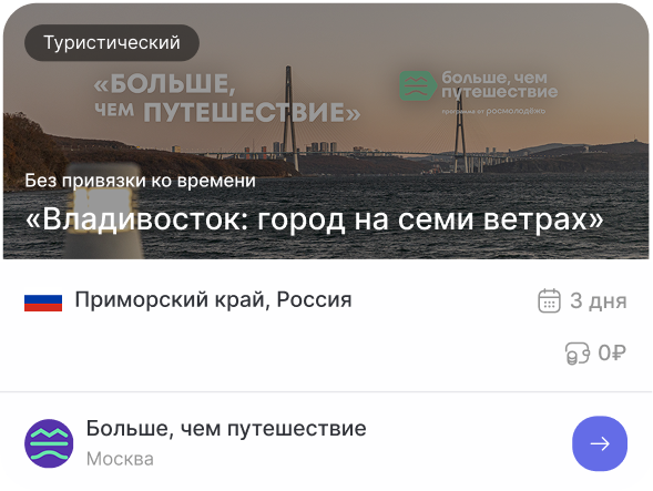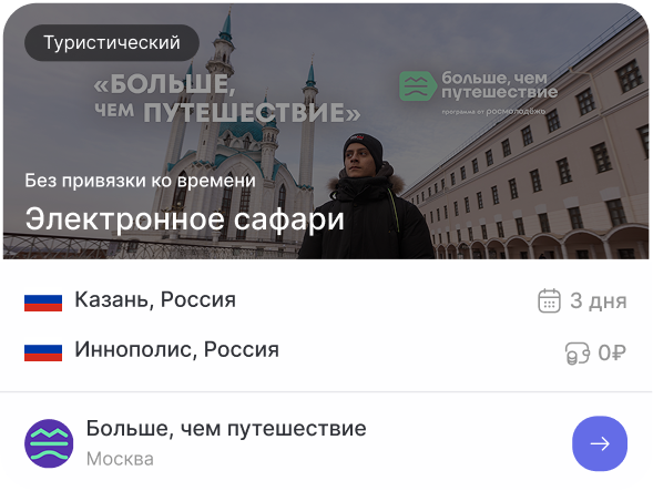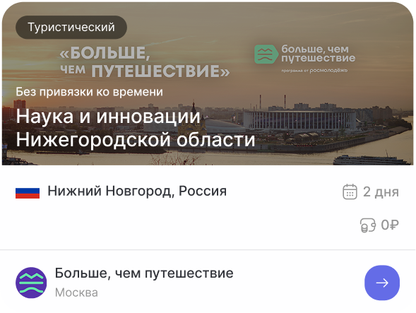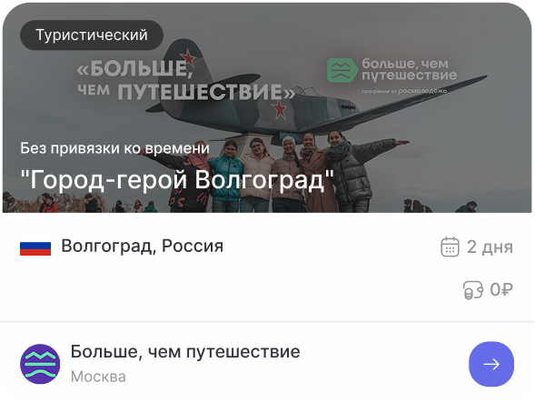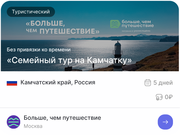 Помимо традиционной туристической программы знакомства с природными, культурными, историческими особенностями регионов, молодые люди посещают российские производства, образовательные организации и другие значимые объекты страны, у них есть возможность внести вклад в развитие городов, участвовать в волонтерской деятельности, стать соавторами путешествий.